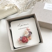 バラ、マーガレットをバランスよく重ねてイヤーカフに仕立てました・:*+.