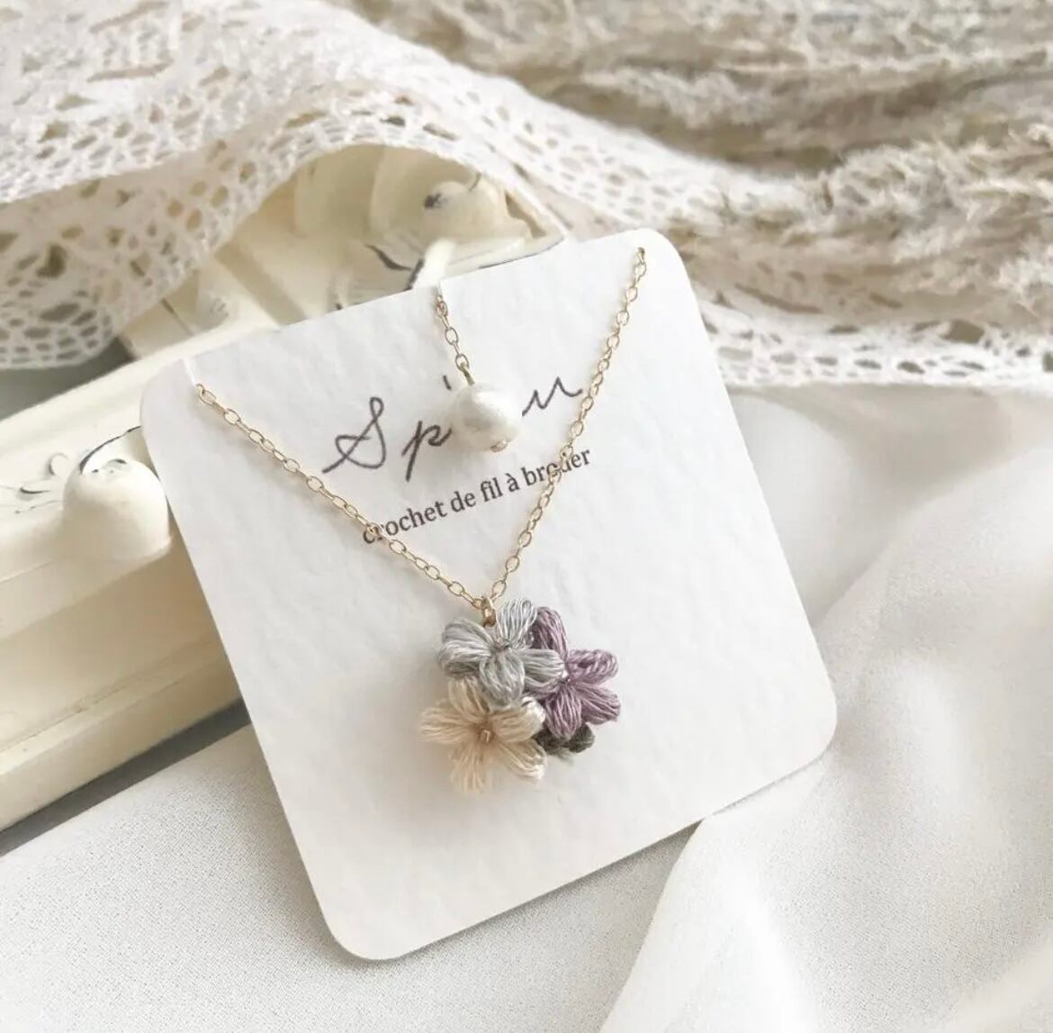 6本撚りの刺繍糸を1本にほどいて、ふんわりやさしいお花を編んでいます・:*+.