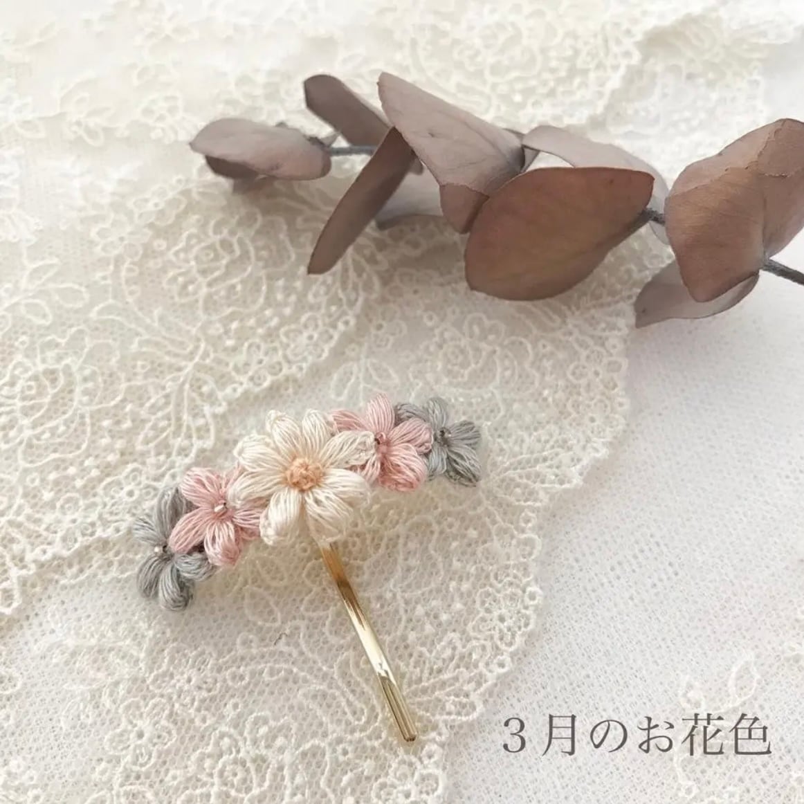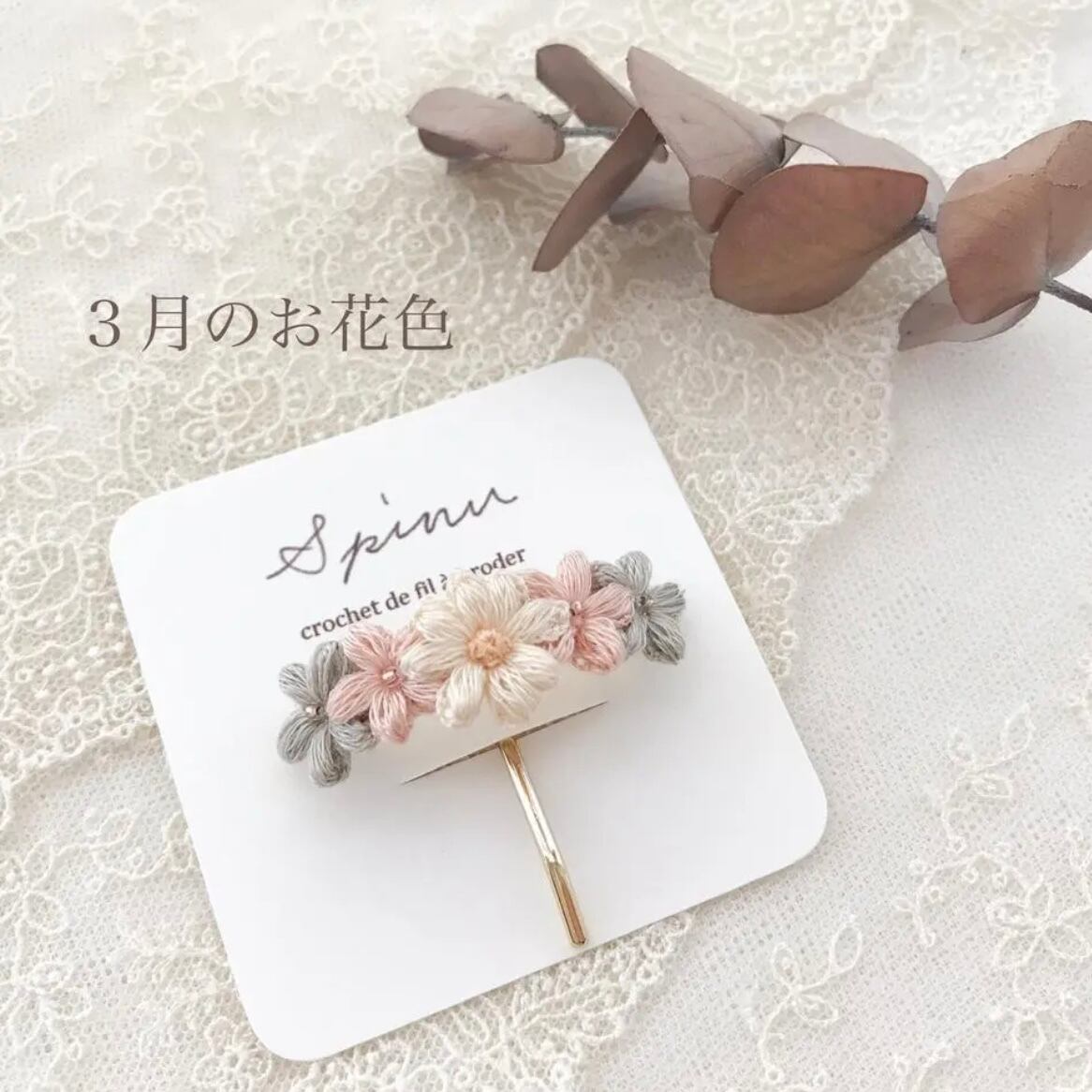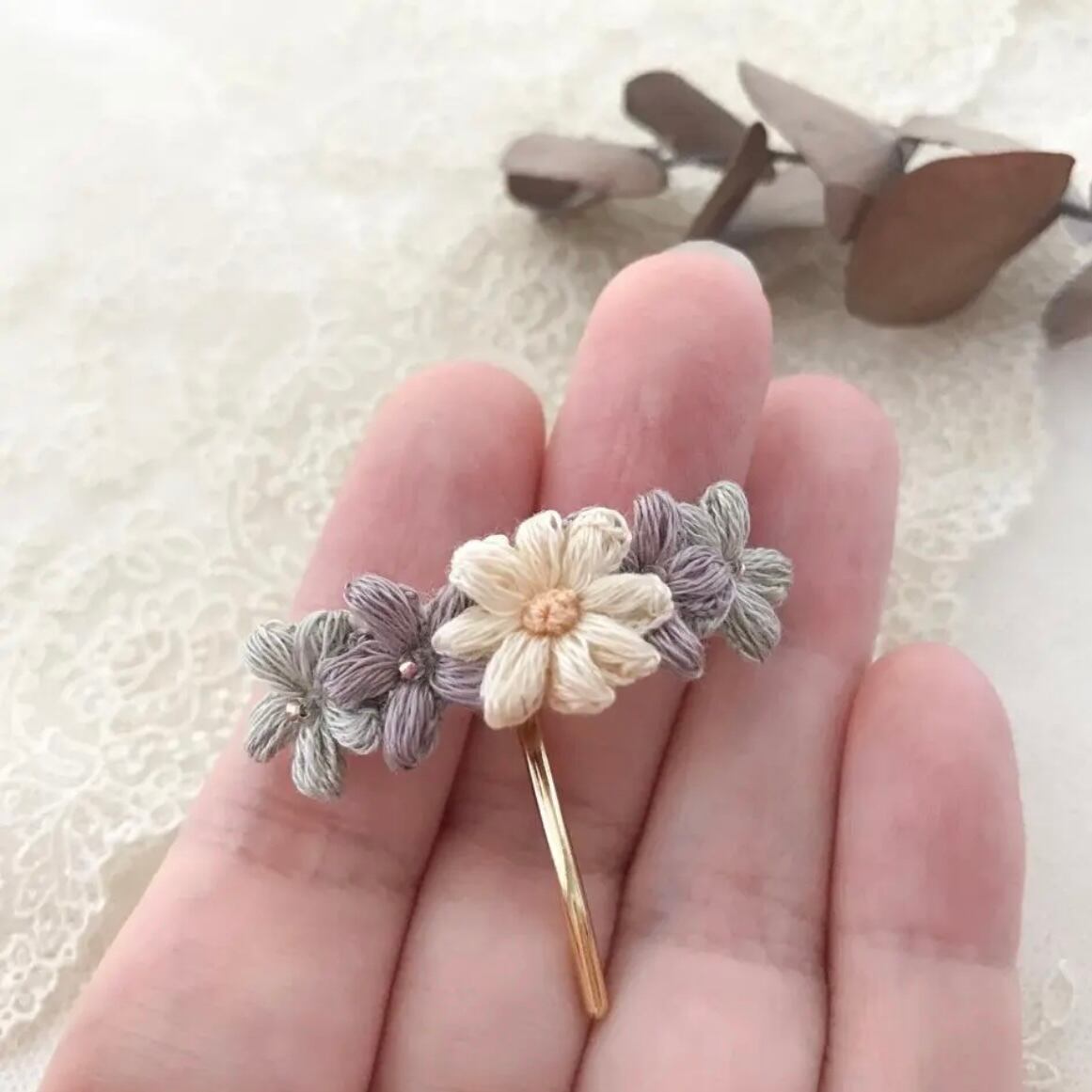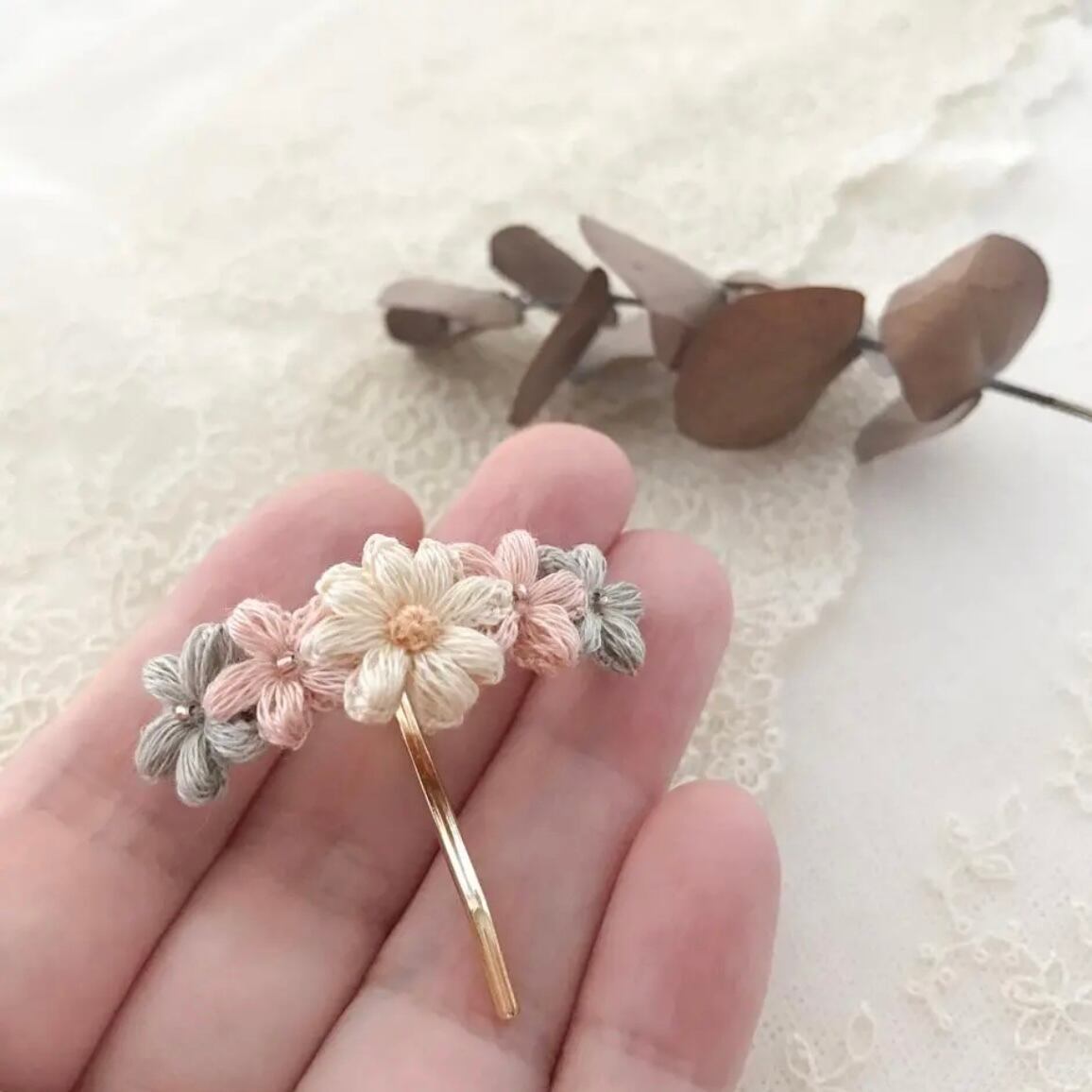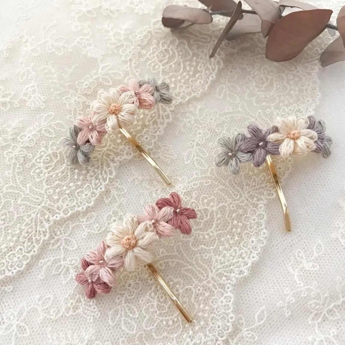 0.8cm〜1.5cmほどのお花を組み合わせてアクセサリー仕立てています。